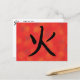 Ett vackert vykort med kanji för eld. Betydelsen av kanji är på baksidan av vykortet.