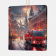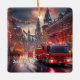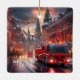 Den röda branden lastbil i en stad gör en trevlig helgdag, perfekt till vilken brandman som helst.