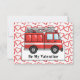 Denna ljusröda eldbil har en bakgrund av röda hjärtan. Meddelandet lyder: "Be min Valentine". Texten på kan anpassas. Obs! Kort lämnas avsiktligt tomt på baksidan, så att barn kan skriva under namn.