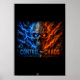 Make a bold statement with this stunning fire vs ice skull design, featuring an intense clash of electric blue lightning and fiery orange lava. This high-detail 3D artwork creates a powerful optical illusion skull that symbolizes balance, energy, and opposing forces.