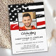Thin Blue Line Firefighter Firande of Life Memorial i en modern Firefighter Flagga American flagga design in Firefighter färg. Anpassa den här brandsläckarens minnesstund firande i livets inbjudan med brandmannens foto, namn & data och känslor och händelseinformation. Den här brandkampbegravningen firande i livet kommer att bli en uppskattad keepsaké. Perfekt för en brandkampbegravning, en brandbegravning, en brandkår eller en brandman firande i livet. I Loving Memory Firefighter Memorial Thin Red Line Flagga. COPYRIGHT © 2020 Judy Burrows, Black Hund Art - Med alla Höger reserverade. Firefighter Firande of Life Red Line Memorial bjudande