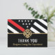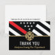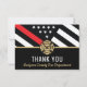 This design features a firefighter flag with black and white stripes, and a thin red line stripe as well. This thank you card is great for showing appreciation to and thanking a firefighter, lieutenant, captain, or chief for their service.