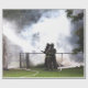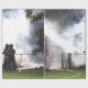 Att slå pappert med ett foto av brandmän som slår en brand.