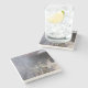 En uppsättning sten underlägg med ett foto av brandmän som slår en husbrand.