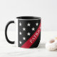 Den här brandkaféen med tunt rött mugg har en svart och vit amerikansk flagga med svart och vitt stars och stripes och en tunn röd linje med en monogrammad namn i vit typografi. Perfekt för eldmän för alla tillfälle. Designad av världsberömd konstnär ©Tim Coffey.