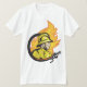 Denna utformning visar ett av de mest igenkännliga yrkena, en brandman. Den här brandmannen ställs mot bakgrund av vissa lågor och håller ett brandslang för att släcka redona. Den här brandmannen med en slang ser underbar ut på manar t-shirt. Perfekt för dig själv eller som gåva