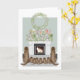 Julchoklad Labrador-familjen med valp hälsning-kort från Ricaso - Two Choc vuxen Labrador Hundar med sex små knubbig labrador-valpar Fireplace Scene med helgdag och gåvor