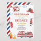 Firetruck Firefighter Kids Birthday Invitation Inbjudningar