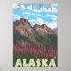 Fireweed & Mountains - Sitka, Alaska - Vintage resor Poster 2007. Den här bilden visar scener från Sitka, AK.