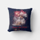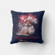 Fireworks 4:e juli Independence day bomull dekorativ kudde. "Lycklig 4:e juli", fras. Var patriotisk och fira Amerika med det här vackert designade trendiget, moderna levande rumsdekoration. Fira i stil med fantastisk-designen. Röd vit och blå färg. Upphovsrätt Marg Seregelyi Fotography.