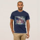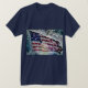 Den här amerikanska flagga markeras, mot fyrverkerier som sprängs, i en färglös visning av, rött, vitt, blått och gult överstrålas i en grumlig, skymd himlar av skifferblått.