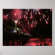 Röda fyrverkerier över vatten vid piren vid Hermosa Beach, CA.