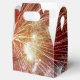Ett lysande, vitt, rosa och rödfärgat blixt från fyrverkeripjäsen Independence day 4:e juli i helgdag tänder jet svart himlar och ger en spännande bild.