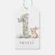 Make a little one's first birthday extra special with this charming gift tag, featuring a delicate watercolor illustration of the number 1, beautifully crafted from tiny, colorful pastel flowers. A cute bunny stands beside the number, playfully nibbling on the blossoms, adding a touch of sweetness and joy to the design. Whether you're a parent, grandparent, or family friend, this enchanting card is sure to bring a smile to both the little one and their loved ones.
