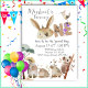 This first birthday party invitation features a delightful safari animals, a koala bear and a hippo family.