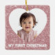 "Celebrate your little one’s first holiday season with this First Christmas Custom Baby Photo Glitter Ornament. Featuring a sparkling pink glitter background and a heart-shaped photo frame, this ornament beautifully showcases your baby’s photo in a sweet and festive design. Personalize it with your child’s name, year, or special message to create a treasured keepsake that captures the joy of their very first Christmas. Perfect for hanging on your tree or gifting to new parents and grandparents, this durable and lightweight ornament adds a touch of sparkle, love, and holiday magic to your décor."