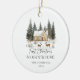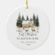 Celebrate the magic of your first Christmas in your new home with this beautifully designed ceramic ornament featuring a cozy winter view.
