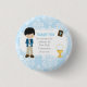 Adonera maten bord med den första kommunisionen Black Hair Boy Button/Badge med ett blått Damaskmönster. Texten kan ändras till kostym enligt dina egna krav och andra matchande objekt finns tillgängliga i min butik för att skapa ett temat party. Bild av Zenlagerdedesign & GreatGrafik