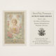 This exquisitely adorned holy card features the Christ Child in a moment of deep Eucharistic reverence. Clothed in a rose-hued tunic and crowned with a golden halo, the Infant Jesus gently raises a radiant Host inscribed with “IHS,” while lovingly clasping a golden chalice—symbols of His Real Presence in the Blessed Sacrament. Two adoring angels hover above in prayerful awe, their presence a reminder of Heaven’s nearness at every Holy Communion. Surrounded by a garland of blooming roses and lilies, the image is framed in an ornate liturgical gold border with intricate Eucharistic detailing, including a chalice motif and decorative sacred flourishes. Ideal for First Holy Communion, Eucharistic Adoration, or as a cherished devotional keepsake, this card draws the soul into the mystery of Divine Love.