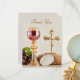 Express your heartfelt gratitude with this elegant First Holy Communion thank you card. Featuring the identical gold chalice, host, bread, wine, and grapes design as the invitations and party collection, the front is accented with a “Thank You” in beautiful gold cursive. The back carries a warm, personal message: