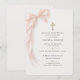 Elegant First Holy Communion invitation featuring a soft pink bow design for a graceful and feminine celebration. Perfect for honoring your daughter special sacrament with a timeless, delicate style. Ideal for Catholic church ceremonies, family gatherings, and communion celebrations. Editable text. Print ready layout.