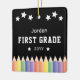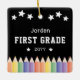 Med ditt barns foto omgiven av lekfulla färgpennor, innefattar den här vibrerande designen namn, år och klass för en roligt, personlig beröring. En perfekt vill gärna minnas tidigt skoldagar och en tänkbar gåva till föräldrar och mor- och farföräldrar. Fira din lilla inlärare med vår första färgstarka fotoKeepsaké Metall Ornament i Klass Back to school! Utformning av Ana Garza/Kardz Studio-design. Mallbilden är generativ innehåll. Om du har några frågor, kontakta mig genom Zazzle- chattan.