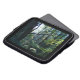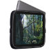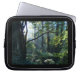 Briljantvita strålar från sol på morgonen, från grenar bakom mörk till en sommarskog i rik, med massiv, ivudomtäckt träd och bördig underborste.