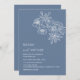 This elegant contemporary wedding invitation features white line art flowers and white script on a dusty blue background.