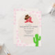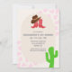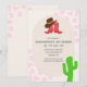First rodeo girl country western birthday. Features pink cow pattern a cactus, cowboy hat and boots