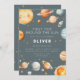 This “First Trip Around the Sun” first birthday invitation features a soft space theme with planets, stars, and a smiling sun in muted blue-gray and warm neutral tones. The artwork colors can’t be edited, but all wording can be personalized. A coordinating back with a simple star pattern keeps the look clean and cohesive.