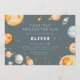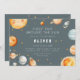 This “First Trip Around the Sun” first birthday invitation features a soft space theme with planets, stars, and a smiling sun in muted blue-gray and warm neutral tones. The artwork colors can’t be edited, but all wording can be personalized. A coordinating back with a simple star pattern keeps the look clean and cohesive.