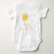 This cute baby bodysuit is decorated with a yellow watercolor smiling sun and says "First Trip Around the Sun" in stylish script typography.
