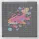 Coaster featuring an illustration of a colorful fish-like animal behind a a 3D-like net. You can replace the image of the fish with your own if you like.