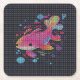 Paper coaster featuring an illustration of a colorful fish-like animal behind a a 3D-like net. You can replace the image of the fish with your own if you like.