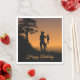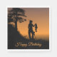 Utformning av en kvinna med fiskeredskap som håller en enorm fisk. Det är slutet på dagen, och sol sätter sig medan hon går hem på en grasslig lutning och stannar nära ett träd.