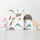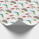 Colorful fishing lures, hats, with fish and bubbles on a white background.