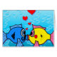 Så sött! Två små fiskar i kärlek. Blåfisk och gult på blå bubbelbakgrund med flytande hjärtan. Det går att lägga till text!
