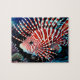 En vacker lionfisk simmar genom undervattensvärlden. Detta är en gåva till alla som kärlek natur och ord under vatten och som kärlek inte gör ett alltför enkelt pussel.