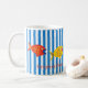 En underbar, lycklig, roligt mugg för att anpassa, anpassa eller köpa enkelt. Blå rand och fisk av primär färgad parad med konstnärer, dagdart.