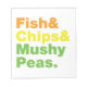 Lustigt Foodie Chip Shop Takeaway Humor ~ Fish and Chip och Mushy Peas. Globe Trotters specialiserar sig på idiosynkratiskt bildmaterial från hela världen. Här hittar du unika hälsningskort, vykort, Poster, Mousepads med mera.