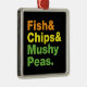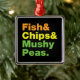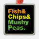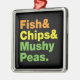 Fisk och Chip och myshi ärtor. Julgransprydnad Metall