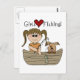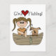 Flickor som älskar att gå fiska ska kärlek dessa gulliga fisketemaT-tröja, hoodies, muggar, tote bags, kort, klistermärkear och andra fisketemaobjekt som presenterar ett liten flickafiske från ett fartyg med henne hunden och text, som läser "flickor (hjärta) som fiskar!".