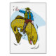 grafisk designillustration av en fiskare som rider en forellnågot liknande en rodeo