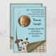 Denna födelsedagsinbjudan för en fiskare som fyller 1 år har valpar som äter det bakåtvikta papperet med en fiskespö i bakgrunden. Massor av utrymme på fram- och baksidan för att ge all information om födelsedagen också.