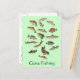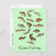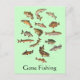 Flera sportfiskar med namn tryckta på anpassadets bakgrund färg med anpassadets text vid grund, "Borta fiske". Anpassade text på baksidan.