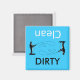 En blå diskmaskin magnet med en person som fiskar med ord och säger att Clen & Dirty gör en fin Dishwasher Magnets
