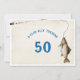 Fiske Det är O-fish-al-Vuxen Birthday-inbjudan Fiske efter födelsedag med en fiskstång och fiskel på en åldrass pappra bakgrundsbild. Underbar för äldre män men kan användas i alla åldrar.