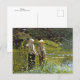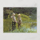 Ett vykort för bra med målningen Fishing (1879) av Winslow Homer (1836-1910), en amerikansk konstnär från realismen. Två små barn som fiskar i en damm med halmhattar på en sommardag.