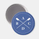 En smart marin och vit magnet för en skarp rower, det här finns utrymme för att ange fyra stycken. De designade visningarna korsade årorna med en dubbla "sydd" vit cirkel runt dem, på en marin blå bakgrund.