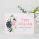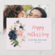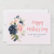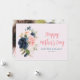 En fotokortsdesign med vattenfärg-blommigt med marinblå och rosa blommor och svart skript. Texten och färg kan vara personlig.